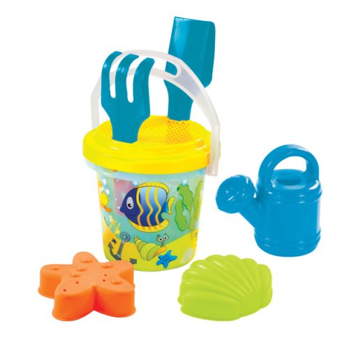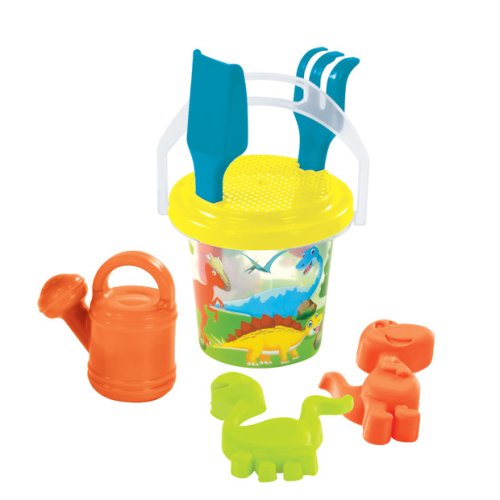 Písková sada transparentní ve třech designech – víly, dinosauří a rybičky. Sada obsahuje kyblík o velikosti 1,3l, hrabičky,lopatku, sítko, konvičku a dvě tématické bábovky. Vyrobeno v EU z kvalitního plastu.