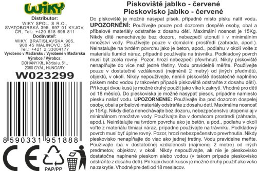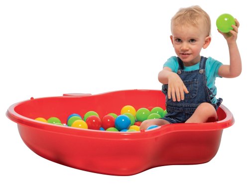 Plastové pískoviště ve tvaru jablka. Při koupi dvou kusů může druhý kus sloužit jako víko (výrobek je uzpůsobený ke vzájemnému propojení).