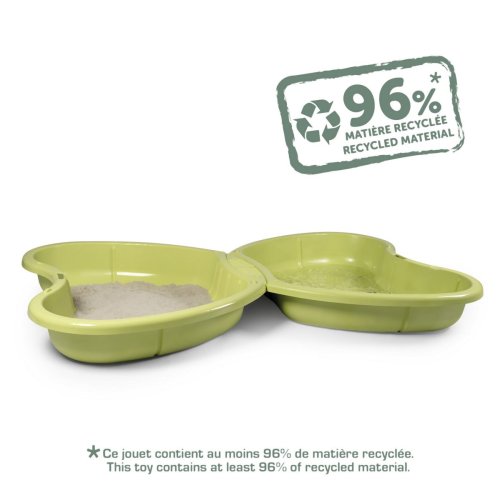 Zelené pískoviště ve tvaru motýla skládající se ze dvou do zebe zapadajících částí. Jedna část může být naplněna pískem a druhá vodou. K vodní trysce v prostřední části může být připojena zahradní hadice. K pohodlnému vypuštění vody z nádoby slouží vypouštecí zátka. Plastové díly jsou ošetřeny anti-UV, což zajišťuje dobrou odolnost a stálost barev v průběhu času. Tento výrobek obsahuje minimálně 96% recyklovaného materiálu. Rozměry rozloženého pískoviště (DxŠxV): 167 x 111 x 18 cm.