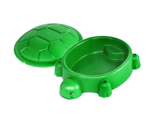 Pískoviště želva tmavě zelené s víkem. Rozměr pískoviště 115×83×35 cm. Vhodné pro děti od 18+m. Vyrobeno z kvalitního plastu v EU.