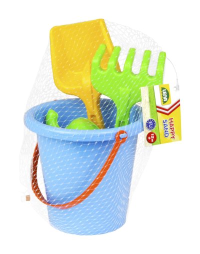 Kyblík o průměru 16cm / 1,4l, hrábě, lopatka, 3x formička