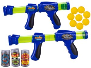 Pistole 42 cm na natažení s pěnovými náboji 8 ks a plechovkami 3 ks - mix barev (žlutá, modrá)