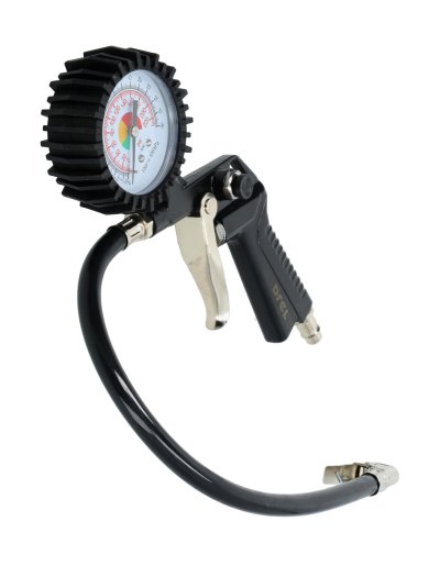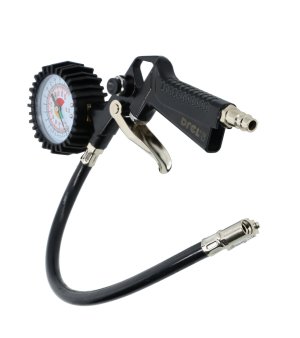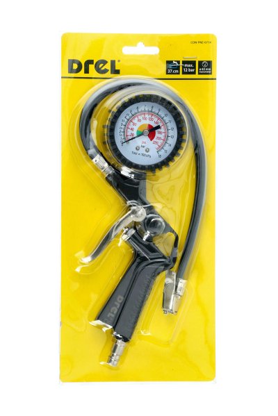 Nafukovací pistole s tlakoměrem a hadicí L-37 cm je pneumatické nářadí používané k nafukování pneumatik a dalších předmětů vyžadujících stlačený vzduch. Je vybavena vestavěným tlakoměrem, který umožňuje sledovat tlak během nafukování a zajišťuje tak přesnou kontrolu procesu.