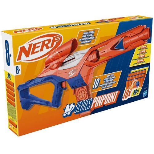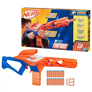 S Nerf Pinpoint zažijí děti pořádnou dávku akce, ať už si hrají venku nebo uvnitř. Díky přesnému puškohledu a výměnnému zásobníku je blastr navržený pro hráče, kteří chtějí trefovat přesně a rychle. 18 přiložených šipek zaručí dlouhotrvající zábavu bez přerušování. Hra s Nerf pistolí rozvíjí postřeh, pohotovost i týmového ducha. Pro maximální bezpečnost při hře doporučujeme použít ochranné brýle (nejsou součástí balení).