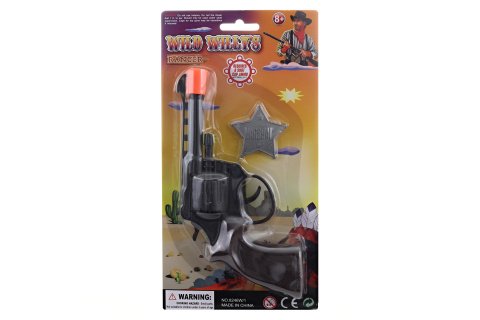Pistole na kapslíky. Materiál plast. Kapsle nejsou součástí balení. Baleno na kartě. Rozměry balení cca 25x13x2 cm. Rozměry pistole 19x10 cm. Součástí balení odznak 4,5x4,5 cm. Věk 8+