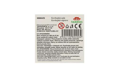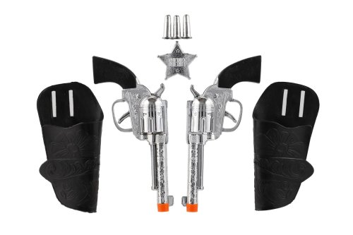 Staň se pravým šerifem Divokého západu! Tato kovbojská sada obsahuje 2 plastové klapací pistole/kolty, stylové pouzdro a další tematické doplňky. Perfektní pro dobrodružné hry na kovboje, duel nebo obranu městečka. Balení na kartě, ideální i jako dárek. Rozměr balení: cca 19 × 29 cm Vhodné pro děti od 3 let