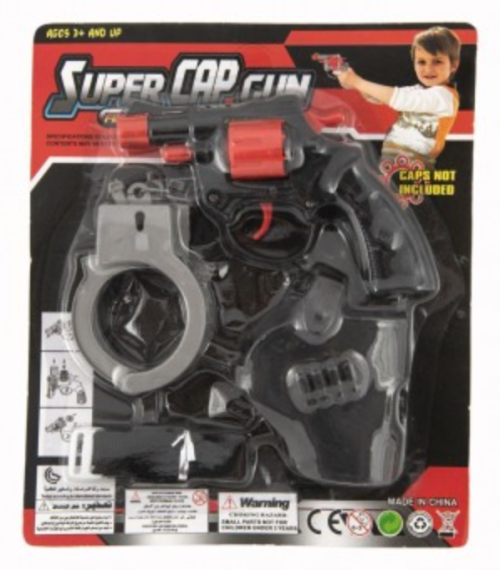 K oblíbeným dětským hrám patří hra na policisty. Kapsle 8 ran nejsou součástí balení. Sada obsahuje pistol velikosti 13 cm, pouzdro a pouta. Vhodné také jako doplněk ke karnevalovému kostýmu. Rozměry balení 20 x 24 x 4 cm. Vhodné pro děti od 3 let.