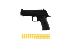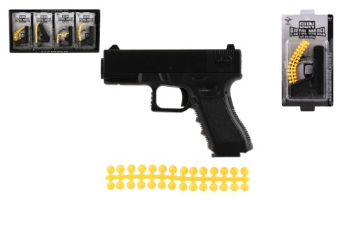 Hravá zábava především pro kluky! Pistole na měkké gumové kuličky zabaví každého pistolníka. Vlož kuličky, nabij, zamiř a střílej. Velikost kuliček je 5 mm. Rozměr pistole: 10 cm Rozměry balení 10 x 20 x 3 cm. Vhodné pro děti od 6 let.