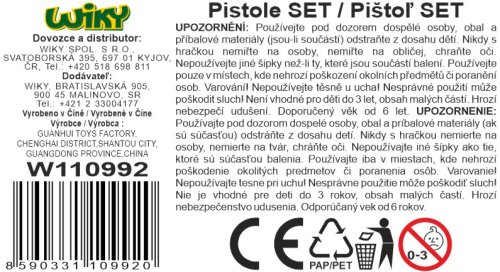Pistole na přísavky pro malé bojovníky nebo pistolníky. Dětem se při hře s pistolkou a náboji nemůže nic stát, protože náboje jsou opatřeny přísavkami. Děti mohou střílet do terče, nebo i na sklo. Pistol je vyrobena z vysoce kvalitního a zdravotně nezávadného plastu, který je odolný vůči mechanickému poškození.