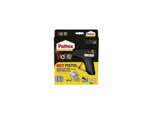 Tavná lepící pistole Pattex - je použitelná pro dřevo, kůži, sklo, papír, látku, kov, karton, korek i plasty. Tavné lepidlo je ideální pro široké uplatnění v domácnosti, při rychlých opravách, aranžování květů a dekorací. V elektrické pistoli se tavná patrona roztaví a stisknutím kohoutku se lepidlo citlivě dávkuje. Výsledný spoj získá svou cílovou pevnost a pružnost za pět minut a je odolný proti vodě.
