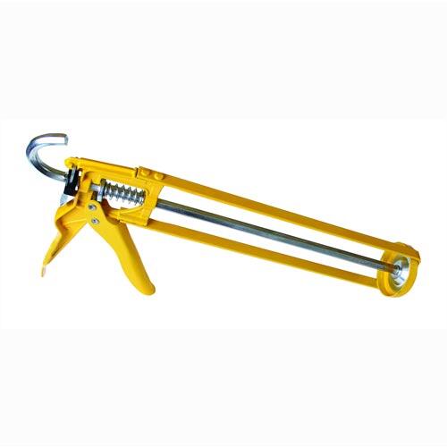Kvalitní kovová vytlačovací pistole se zpětným chodem. Zpětný chod má funkci zabránit po ukončení práce vytékání materiálu z kartuše. Hákovité zakončení pro pohodlné a rychlé nastavení pístu do požadované polohy. Tyč aplikačního pístu má šestihranný profil pro zvýšené tření. Používá se na práci s tmelem, silikonem, akrylem, atd... Délka celkem 35 cm, užitná délka pro kartuši 23 cm (310 ml). EAN 8590804025771