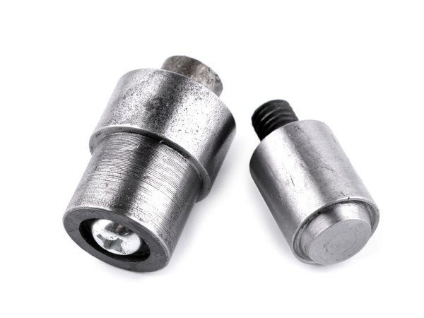 Kovový piston využijete k nýtování průchodek. Skládá se ze dvou částí. Používá se tak, že větší část pistonu umístíme v dolní části lisu a vložíme látku s průchodkou Ø12 mm. Druhou část zašroubujeme do horní části lisu. Průměr spodní části, která se vkládá do lisu je 18,9 mm.