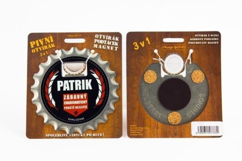 Otvírák ve tvaru velké pivní zátky je dobrou volbou pro všechny milovníky nejtradičnějšího českého nápoje. Navíc překvapí i dalšími možnostmi. Využijte jako podtácek, připněte na ledničku díky magnetu. Potěšte mužské ego lichotivými nápisy.Díky širokému výběru nejčetnějších mužských jmen a obecných rodinných názvů snadno najdete ten nejvhodnější pro vás.