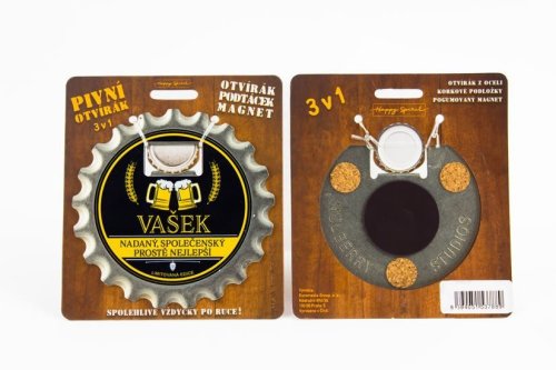 Otvírák ve tvaru velké pivní zátky je dobrou volbou pro všechny milovníky nejtradičnějšího českého nápoje. Navíc překvapí i dalšími možnostmi. Využijte jako podtácek, připněte na ledničku díky magnetu. Potěšte mužské ego lichotivými nápisy.Díky širokému výběru nejčetnějších mužských jmen a obecných rodinných názvů snadno najdete ten nejvhodnější pro vás.
