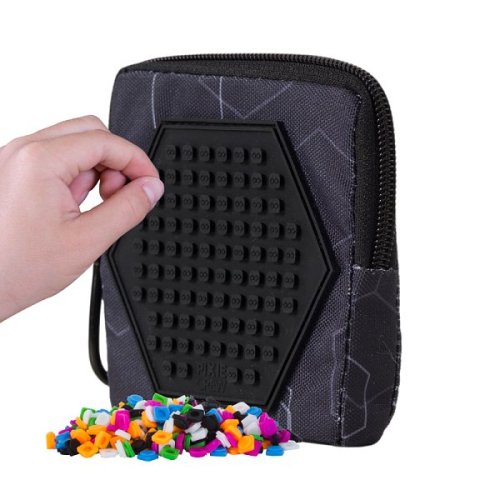 Víceúčelové malé pouzdro pro každodenní použití. Pouzdro je vyrobeno z kombinace praktického silikonu, který chrání obsah pouzdra při nárazech a pádech, a stylové látky. Velmi snadno se udržuje, stačí jednoduše otřít vlhkým hadříkem nebo houbičkou. Pouzdro je v horní části uzavíratelné na zip a po straně na poutku je připevněna karabina. Vnitřní prostor je vhodný na drobnosti denní potřeby jako např. kosmetické potřeby, kreditní karty, peníze, klíče a jiné drobnosti. Na přední straně je umístěn unikátní silikonový PIXIE CREW creative panel TM černé barvy, šestiúhelník, k dispozici máte tedy 83 bodů pro nekonečné množství motivů na každý den díky PIXIES (pixelům), které můžete kdykoli sundat a vyměnit za jiné. Ke každému pouzdru zdarma přikládáme balíček přibližně 50 ks malých PIXIES (pixelů). Rozměry balení: 10 x 10 x 2 cm. Věk: 5+