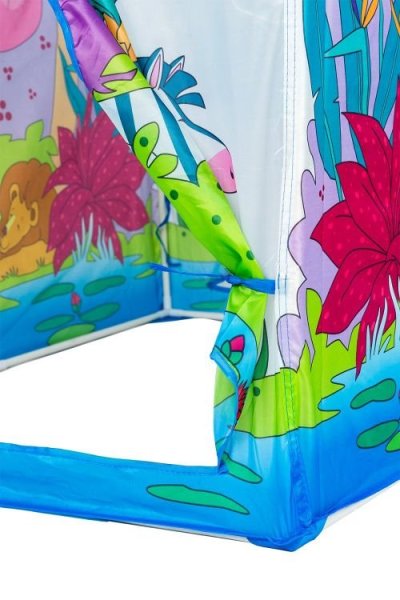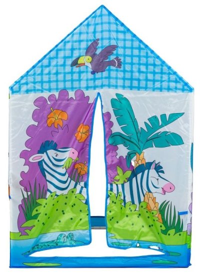 Dětský stan s motivem zoologické zahrady plné zvířátek. Stan zaujme svou veselou barevností na první pohled a zajistí zábavu na dlouhou dobu. Podpořte fantazii svého dítěte a pomozte mu postavit stan, který nemusí sloužit pouze při hře na obchod. Stejně dobře poslouží jako originální skrýš nebo osobní koutek, kde mohou děti odpočívat. Stan je vyroben ze 100% polyeteru (PES) a obsahuje plastové skládací tyče a spojnice. Stan lze jednoduše postavit i složit. Rozměry stanu po složení: 102 x 95 x 72 cm. Vhodné pro děti od 3 let.