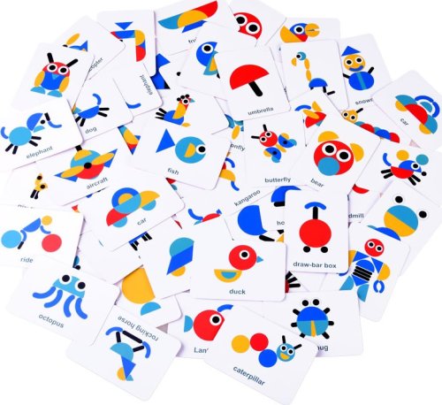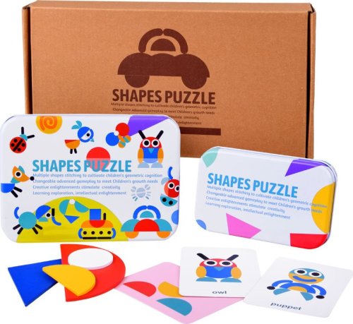 Dřevěné puzzle tangram je skvělá kreativní hračka, která zabaví dítě na celé hodiny a zároveň podpoří jeho rozvoj. Zábava spočívá v uspořádání správného obrázku podle přiložených kartiček – stačí uspořádat kostky podle vzorů nakreslených na kartičkách. Tangram nabízí mnoho možností, kromě obrázků podle kartiček lze dílky vyskládat do libovolných obrázků nebo tvarů, které dítě vymyslí. Obrázky na kartách jsou popsané v angličtině, a celá hra tak může sloužit i jako zábavný pomocník při učení angličtiny. Hra je zabalena v praktické kovové krabičce. Sada obsahuje: