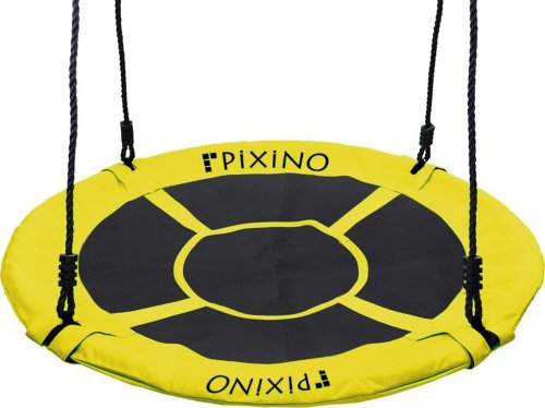 Houpací kruh Čapí hnízdo PIXINO ve žluto-černém provedení je ideální pro venkovní i vnitřní použití a Vaše děti si ho zamilují. Sedadlo houpačky je vyrobeno z vysoce kvalitního polyesteru, který je odolný vůči povětrnostním vlivům a opotřebení. Pozinkovaný rám je chráněn pěnovým polstrováním tak, aby bylo Vaše dítě v bezpečí a zároveň mělo pohodlí při houpání. Čapí hnízdo má průměr sedadla 100 cm a maximální nosnost 150 kg . Dvě závěsná lana jsou výškově nastavitelná, a to až do 160 cm. Tloušťka závěsných lan je 1 cm. Houpačka se zavěšuje za kovové kroužky, které jsou provlečené na závěsných lanech. Vhodné pro děti od 3 let.