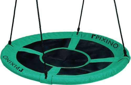 Houpací kruh Čapí hnízdo PIXINO v zeleno-černém provedení je ideální pro venkovní i vnitřní použití a Vaše děti si ho zamilují. Sedadlo houpačky je vyrobeno z vysoce kvalitního polyesteru, který je odolný vůči povětrnostním vlivům a opotřebení. Pozinkovaný rám je chráněn pěnovým polstrováním tak, aby bylo Vaše dítě v bezpečí a zároveň mělo pohodlí při houpání. Čapí hnízdo má průměr sedadla 110 cm a maximální nosnost 150 kg . Dvě závěsná lana jsou výškově nastavitelná, a to až do 160 cm. Tloušťka závěsných lan je 1 cm. Houpačka se zavěšuje za kovové kroužky, které jsou provlečené na závěsných lanech. Vhodné pro děti od 3 let.