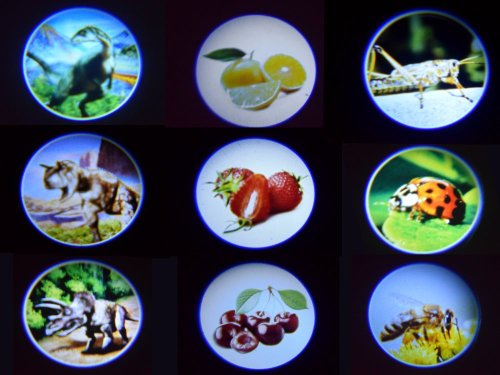 díky svým malým rozměrům je praktický a můžete si ho vzít vždy s sebou, ať už jdete kamkoli každý disk obsahuje 8 obrázků s různým tématem - na prvním jsou dinosauři, na druhém hmyz a na třetím ovoce díky 3 diskům s diapozitivy se projektor rychle neomrzí bez nasazení sklíček jej lze použít jako světlo pro provoz jsou třeba baterie 2x x 1,5 V AA (nejsou součástí balení)
