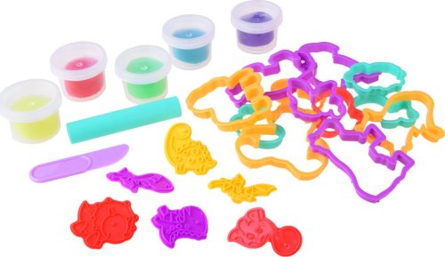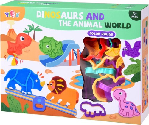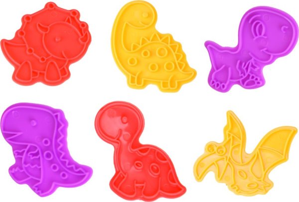 Vykrajovátka pro kreativní tvoření s modelínou! Sada plastelíny s barevnými vykrajovátky, díky kterým bude modelování s plastelínou jedna radost. Sada obsahuje: - modelovací hmotu v pěti barvách (každá cca 35 g) - plastový nůž - váleček - 6 razítek dinosaurů - 6 vykrajovátek dinosaurů - 6 vykrajovátek zvířátek