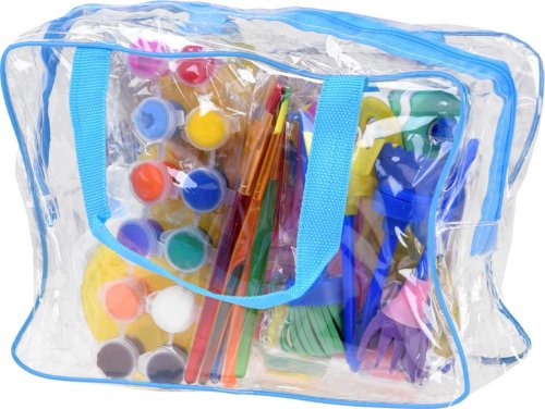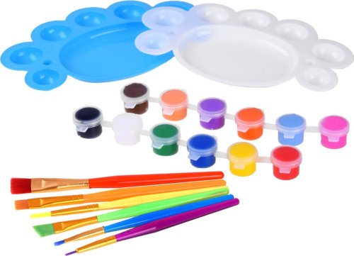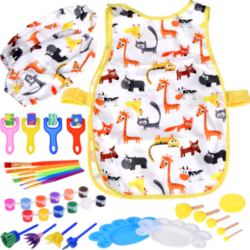 Každý malý umělec potřebuje pořádný prostor a pomůcky pro kreativitu. Tato sada ochrání oblečení malého malíře a zajistí všechny pomůcky, které by mohl potřebovat. Sada obsahuje: - 4 x váleček se vzorem - 4 x štětce s pěnovou špičkou - 6 x štětců různé tloušťky - 5 x razítkovacích houbiček na tyčinkách (různé velikosti) - razítkovací houbička - 2 x paletu na barvy (modrá a bílá) - 2 x barvy (12 barev) - ochranná zástěra - 2 x ochranné návleky na ruce - taška na příslušenství. Rozměry: - rukávy: délka: 25 cm, šířka pasu: cca 6,5 cm - zástěra: 49 x 34 cm - paleta 16 cm x 10,5 x 1 cm - váleček 13,5 cm x 6 cm - délka štětců: cca 13 cm -15 cm - rozměr razítek s houbičkou: cca 8 cm - 10 cm - průměr houbičky: cca 8 cm - štětce s pěnovou špičkou: cca 10 cm. Zabaleno v dárkové krabičce = perfektní dárek pro malé kuchaře!