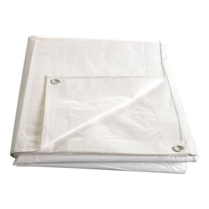 Bílá plachta, je vhodná například na zakrytí stavebních materiálů jako je písek či na dřevo.