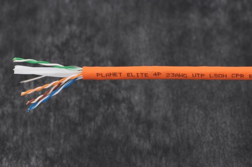 Kabel kategorie Cat6, 4pár, drát, UTP, LS0H, X-spline + Ripcord, oranžová barva, cena za 305 m.