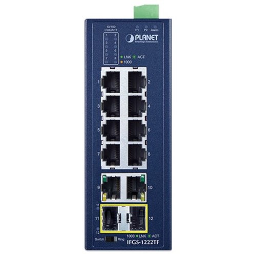 IFGS-1222TF podporuje superrychlou technologii kruhové redundance odolnou proti poruchám a je vybaveno funkcí rychlé samoobnovy, která zabraňuje přerušení a vnějším zásahům. Duální porty SFP zahrnují pokročilou kruhovou obnovu dat prostřednictvím DIP switche. V jednoduché kruhové síti s 8 jednotkami může být doba obnovy datového spojení do 1 ms. Vzhledem k rozdílům mezi funkcemi One Key Ring a ERPS Ring, které jsou k dispozici v průmyslových zařízeních PLANET, nejsou tyto dvě funkce vzájemně kompatibilní. Funkce IFGS-620TF One Key Ring nabízí jednodušší a rychlejší nasazení pomocí nastavení DIP switche.
