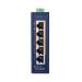 Průmyslový mini switch nabízející 5x RJ-45 10/100/1000 Base-T port, z toho čtyři porty s podporou PoE+ (802.3af/at) napájení až 30 W na port a celkový napájecí PoE výkon 120 W.