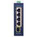 Kompaktní průmyslový switch nabízející 4× RJ-45 10/100/1000 Base-T porty s podporou PoE+ (802.3af/at) a 1× 1000Base-SX/LX/BX SFP port. Podporuje napájení až 30 W na port a celkový napájecí PoE výkon 120 W.