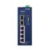 Flexibilní průmyslový přepínač a konvertor s PoE+ (802.3af/at), 4x RJ-45 port 10/100/1000 Base-T, 2x 1G SFP Base-SX/LX/BX, 4x PoE+ injektory (až 36 W/port) s celkovým výkonem 120 W (při napájení DC 48-56 V).