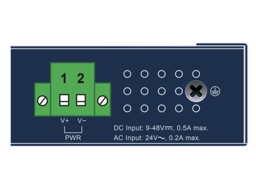Napájení v rozsahu 9-48 V DC, krytí IP30, kovová skříň, rozšířená pracovní teplota -40 až +75 °C.
