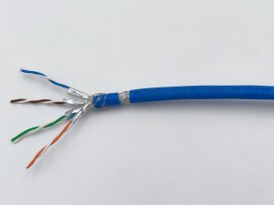 Kabel kategorie Cat6A, 500 MHz, 4pár, drát, SFTP, LS0H, každý pár je stíněný zvlášť folií + celkové opletení, balení 420 m, modrá barva, cena za balení.