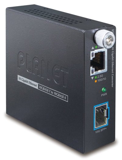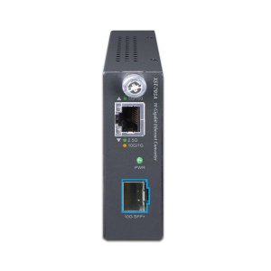 Smart konvertor Ethernet RJ-45 10G/5G/2.5G/1G/100 Base-T na optiku 10G Base-X se slotem SPF+ (SR/LR). Vzdálenost nasazení lze prodloužit z 300 m (multimode) až na 60 km (single-mode).