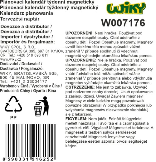 Pro přehled ve schůzkách, snadnější plánování pracovního týdne či zapisování školních úkolů je magnetický týdenní plánovač ideální. Kdykoliv můžete použitím suché stěrky napsaný text smazat a přepsat stírací fixou.