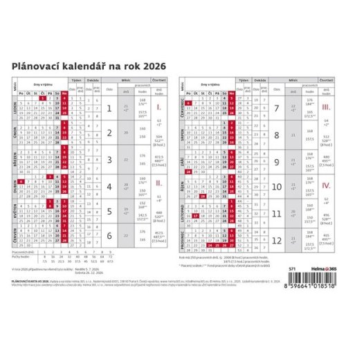 Rozměr: 21,1 x 14,8 cm 1 list České roční pracovní a jmenné kalendárium