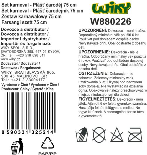 Fajnový kostým čaroděje, člověka s magickými a prorockými schopnostmi. Karnevalový kostým pro každého čaroděje Velikost S: do 116 cm (3 - 6 let)