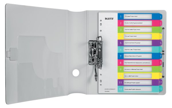 Opakovatelně použitelný a extra odolný plastový rejstřík v zářivých barevných kombinacích Potisknutelný na PC pro upravení dle vlastních potřeb (navštivte www.leitz-easyprint.com)