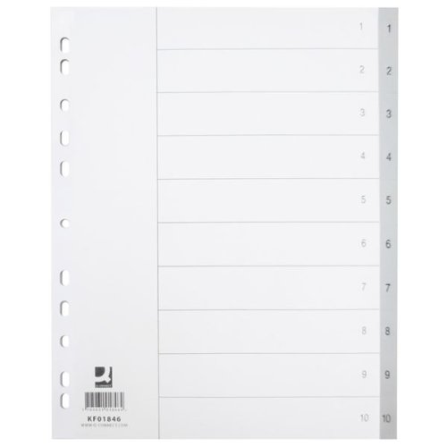 Plast.rozlišovače Q-Connect - A4+, šedé, sada 1-10