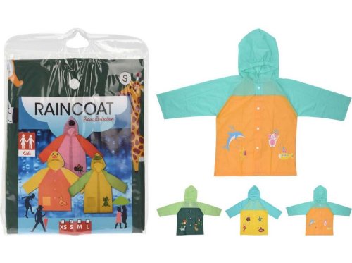 Pláštěnka pro děti, PVC, s potiskem, mix velikostí, mix barev. materiál: PV mix barev: tmavě zelená / světle zelená, tyrkysová / žlutá, tyrkysová / oranžová mix potisků mix velikostí: XS, S, M, L Vhodné …