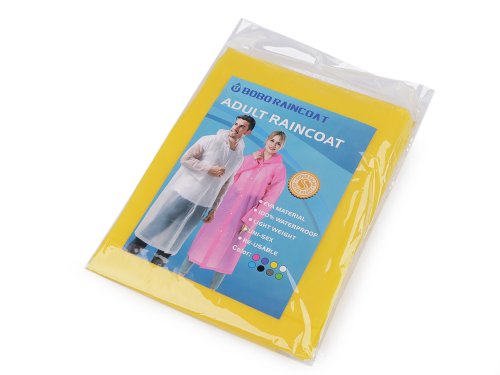 Pláštěnku využijete kdekoli, kde vás přepadne déšť. Je vyrobená z pevného materiálu, kapuce má stahovací šňůrku. Pláštěnka se zapíná na druky, je vložená do plochého sáčku. Pláštěnka měří: zadní délka cca 113 cm, délka rukávu (měřeno od kapuce po konec rukávu) 75 cm, obvod hrudi 130 cm.