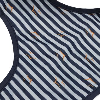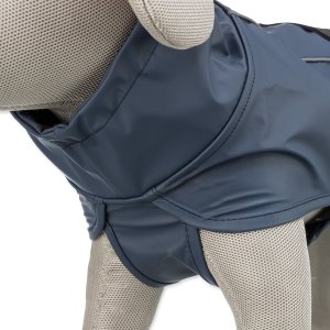 Pláštěnka s vyšším krkem. Nastavitelná kolem krku a přes břicho.