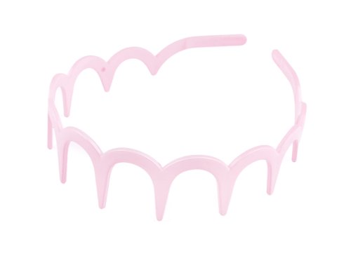 Plastová čelenka s obloučky a velkými zuby má lesklý a hladký povrch. Je vyrobená z kvalitního plastu, velmi dobře ve vlasech drží. Můžete ji využít jako základ k dalšímu dozdobení a vytvořit si tak jedinečný kousek přímo na míru pro vás. Ozdoby můžete nalepovat nejlépe lepidlem na textil nebo tavnou pistolí.