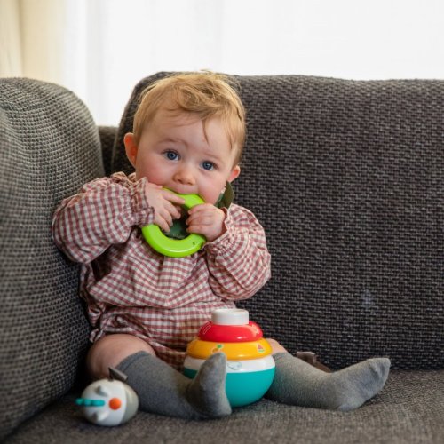 Tato úžasná plastová hračka rozvíjí hmat a koordinaci oko-ruka.