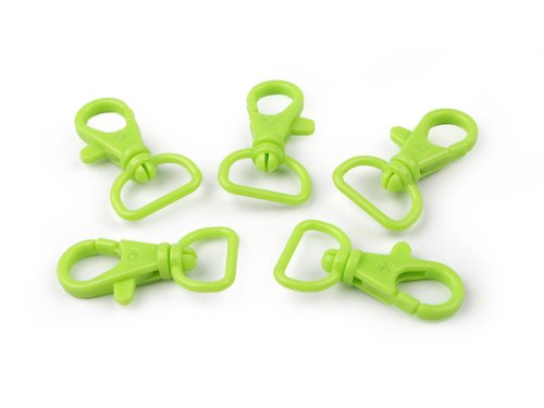 Plastová karabina s otočnou hlavou se hodí k upevnění popruhů k dětským taškám, batůžkům apod. Má malou hmotnost, hodí se i na výrobu šňůrek na krk.