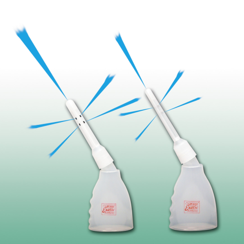 Sada pro očistu análku i vagíny s dvěma nástavci. Nástavce mají otvory ve špičce i na bocích pro dokonalejší očistu. Délka použitelné části nástavců 8,5 cm, šířka 1 cm a 1,5 cm. Objem nádobky 160 ml.