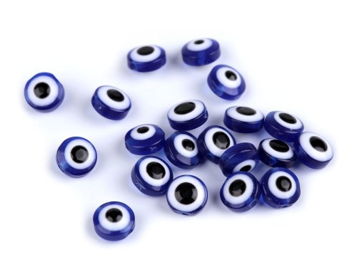 Plastové korálky Alláhovo oko mají výraznou, jedinečnou kresbou. Jsou oboustranné, mají tvar kulaté placičky, horní i dolní strana je vypouklá. Osloví vás při výrobě přívěsků, náušnic nebo náramků. Hodí se i do náhrdelníků. Jejich velkou výhodou je lehký materiál, proto je využijete i na ozdobení různých dekorací, např. lapačů snů. Náš tip: v mnoha kulturách se věří, že symbol Alláhova oka chrání před zlým pohledem. Je známý svou silnou ochrannou mocí, proto je využíván do ochranných amuletů. Můžete jej znát i pod názvem Oko proroka, Oko Boží, Nazar, Oko Fatimy apod.