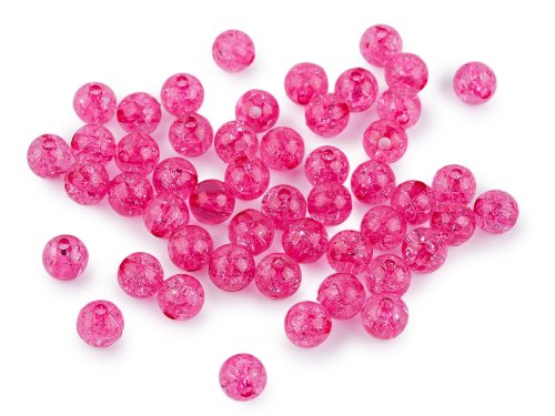 Plastové korálky s efektem kraklé, tedy prasklin, lidově nazývaných práskačky, jsou velice variabilní. Mají všechny výhody plastových korálků - jsou lehoučké, mají dostatečně velký průvlek, aby jimi prošly i stužky nebo voskované šňůry. Vzhledem ke způsobu zpracování plastů upozorňujeme, že na některých korálcích mohou být na pohled či na dotek patrné zbytky spojů. [V balení 30 g je cca 106-110 ks korálků.]