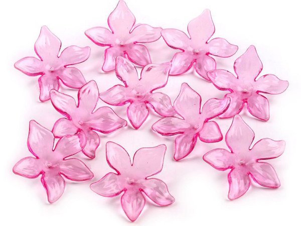 [Půvabný plastový květ v transparentních barvách nadchne především korálkářky, které rády tvoří květinové šperky.